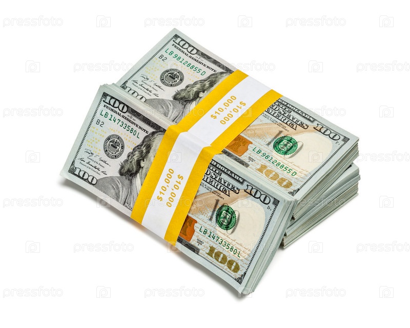 Креативная концепция финансирования бизнеса, зарабатывающая деньги - стопка пачек банкнот номиналом 100 долларов США 2013 года, изолированных на белом