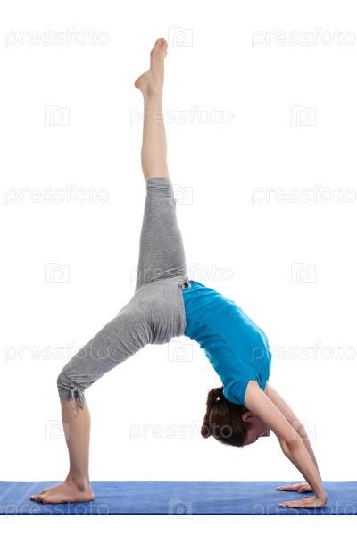 поза колеса с одной ногой, поднятой прямо вверх