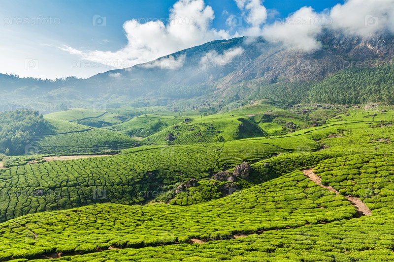 Керала Индия: плантации зеленого чая в Муннаре, Керала, Индия - туристическая достопримечательность