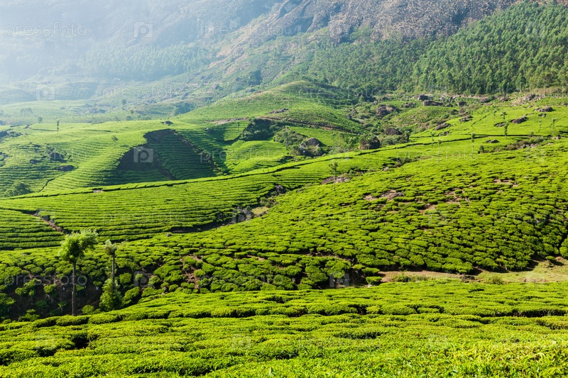 Керала, Индия: плантации зеленого чая в Муннаре, Керала, Индия, крупным планом