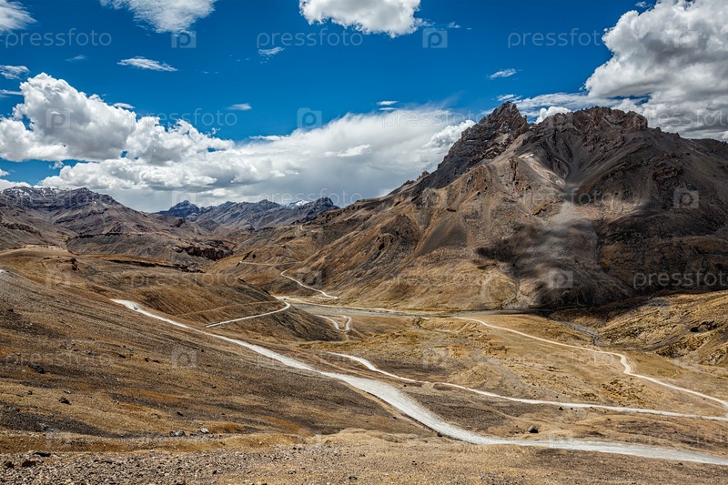Знаменитая высокогорная дорога Манали-Лех в Ладакх в индийских Гималаях. Ладакх, Джамму и Кашмир, Индия