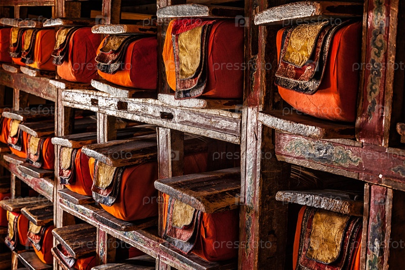 Фолианты старых рукописей в библиотеке Тиксей Гомпа (тибетский буддийский монастырь). Ладакх, Индия