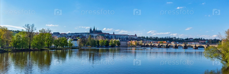 Вид на Карлов мост через реку Влтаву и Градчаны