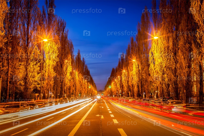 Уличная дорога вечером с размытием изображения. Мюнхен, Германия