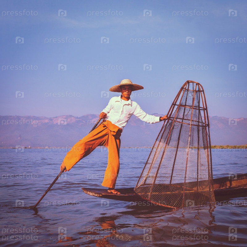 Традиционный бирманский рыбак на озере Инле, Мьянма