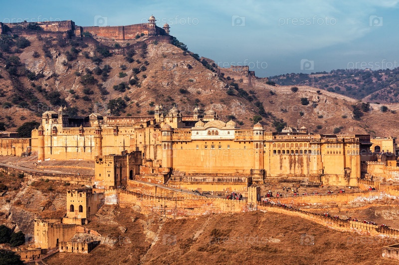 Известная индийская достопримечательность Раджастана - форт Амер (Янтарь), Джайпур, Раджастан, Индия