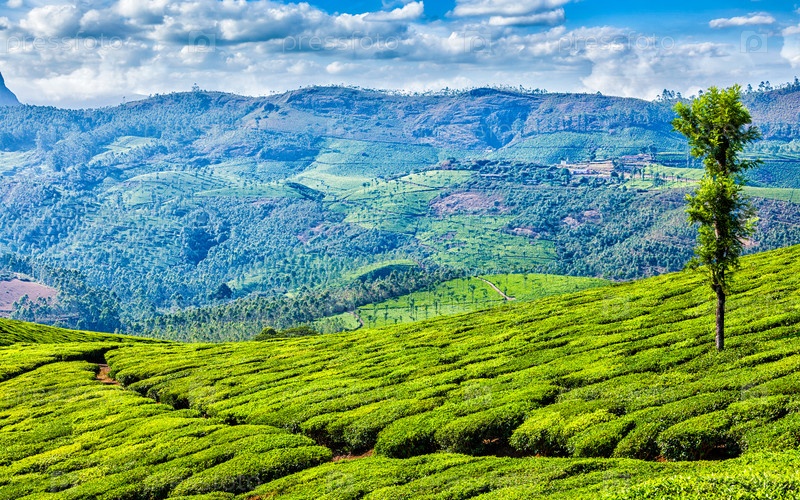 Плантации зеленого чая в Муннаре, Керала, Индия