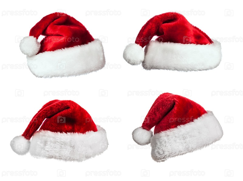 Шапки Санты на белом