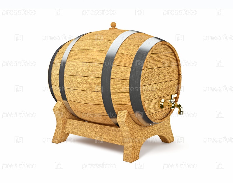 Деревянная дубовая бочка для бренди, вина, пива с клапаном на белом фоне