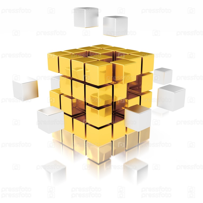 Концепция совместной работы - металлические кубики, собирающиеся в золотые