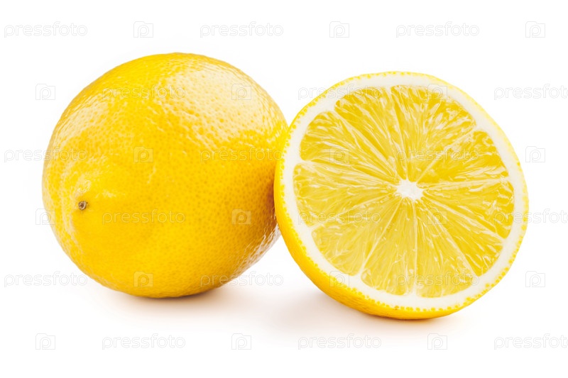 Лимон и разрезанная половина ломтика изолированы на белом фоне