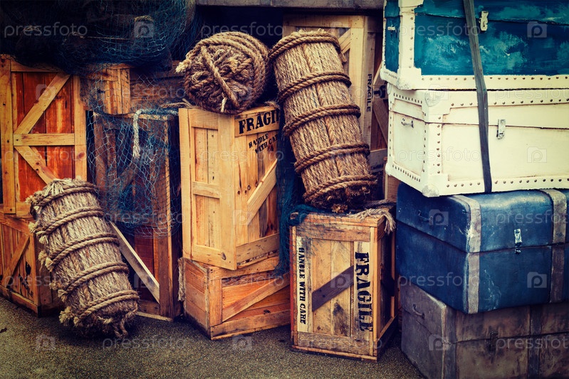 Винтажный багаж и ящики в стиле ретро-хипстера