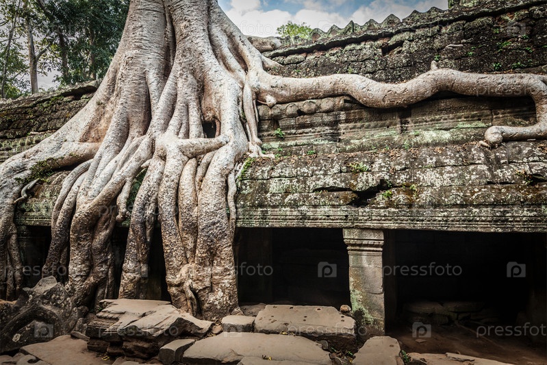 Древние руины и корни деревьев, храм Та Пром, Ангкор, Камбоджа
