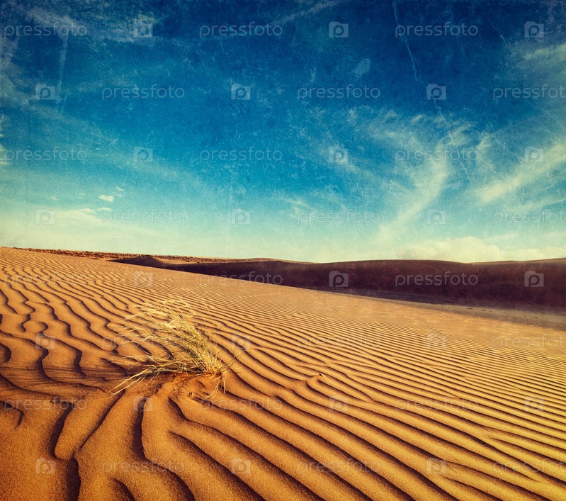 Винтажный ретро-хипстерский образ путешествия по дюнам пустыни Тар. Сэм Песчаные дюны, Раджастхан, Индия с наложенной гранжевой текстурой