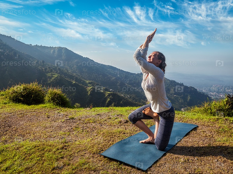 Женщина, занимающаяся продвинутой асаной йоги Аштанга Виньяса