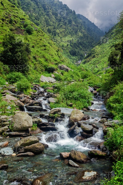 Водопад Багсу Наг в Гималаях. Маклеод Гандж, Химачал-Прадеш, Индия