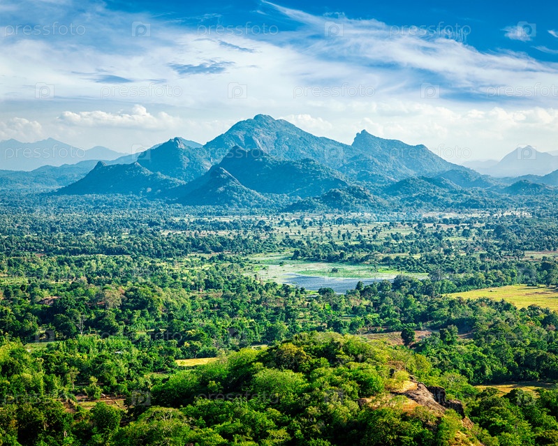 Пейзаж Шри-Ланки - вид на скалу Сигирия, Шри-Ланка,