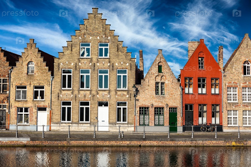 Старые дома и канал в Брюгге (Брюгге) на закате, Бельгия