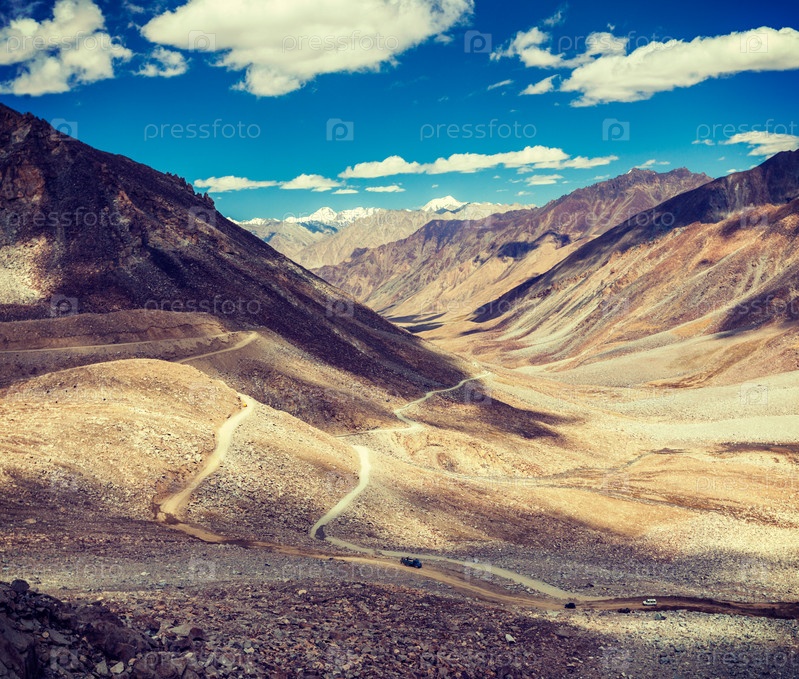 Гималайский пейзаж с дорогой, Ладакх, Индия
