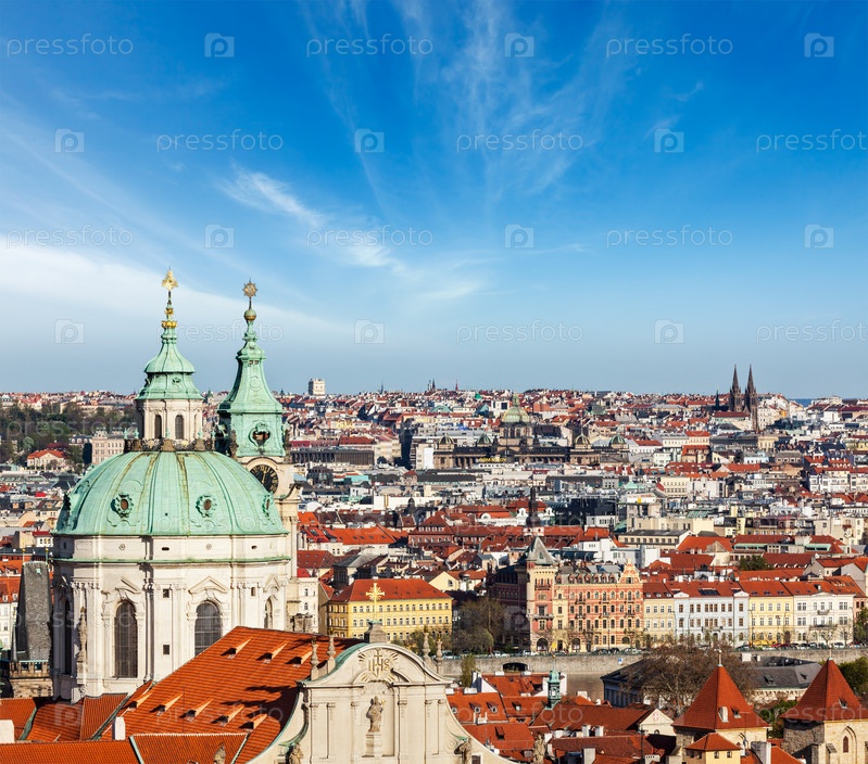 Вид с воздуха на Прагу из Пражского Града. Прага, Чехия