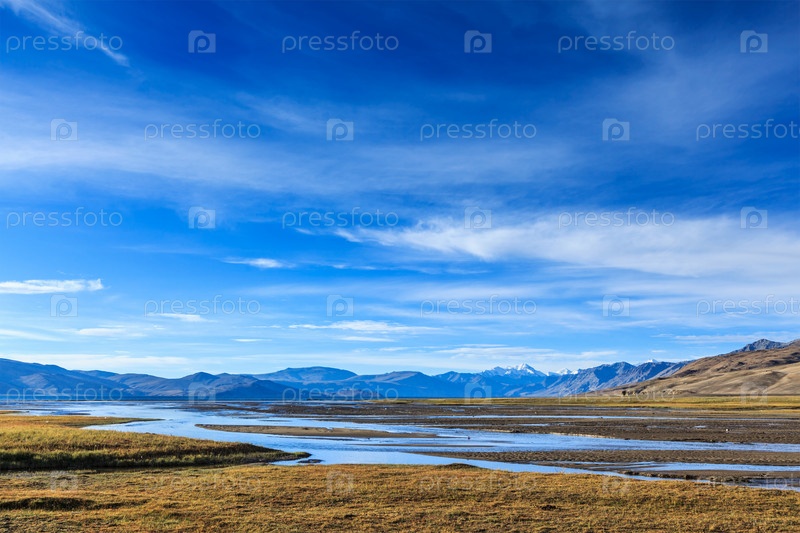 Озеро Цо Морири в Гималаях в Ладакхе, Индия