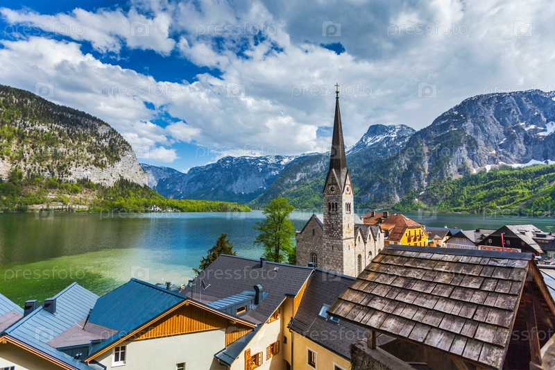 Австрийская туристическая деревня Гальштат на Гальштаттер-Зее в австрийских Альпах. Зальцкаммергут, Австрия