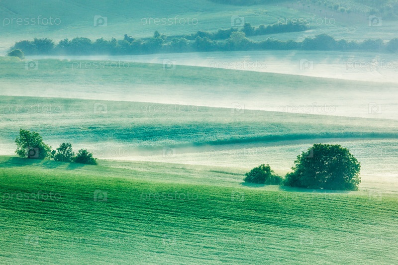 Моравские холмистые поля в утреннем тумане