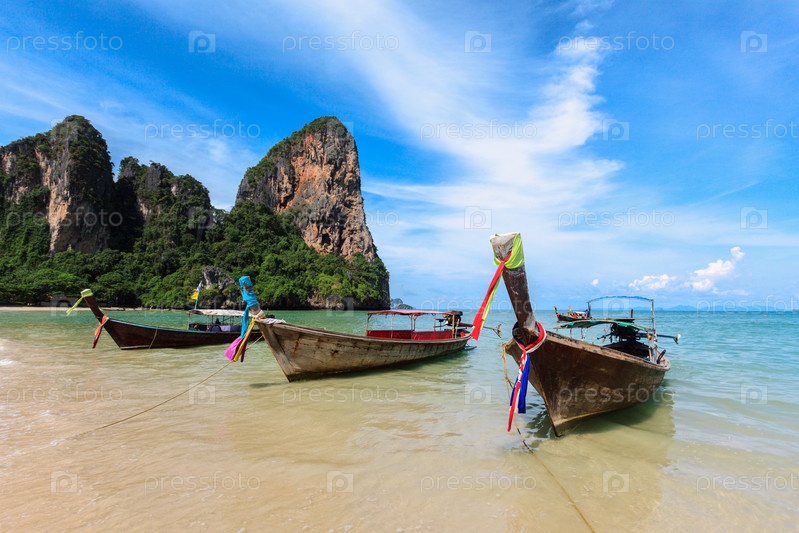 Лодки с длинным хвостом на пляже, Таиланд