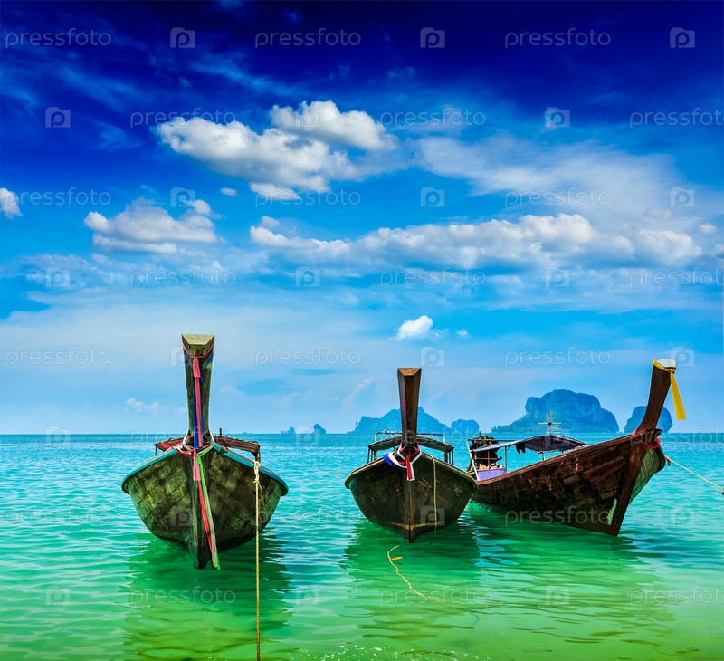 Лодки с длинным хвостом на пляже, Таиланд
