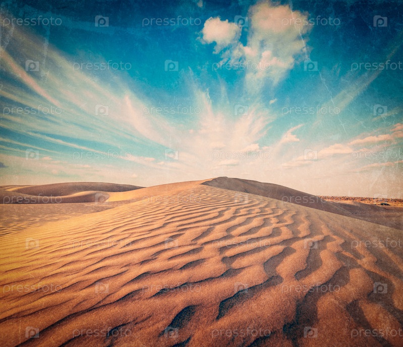 Винтажный ретро-хипстерский образ путешествия по дюнам пустыни Тар. Сэм Песчаные дюны, Раджастхан, Индия с наложенной гранжевой текстурой