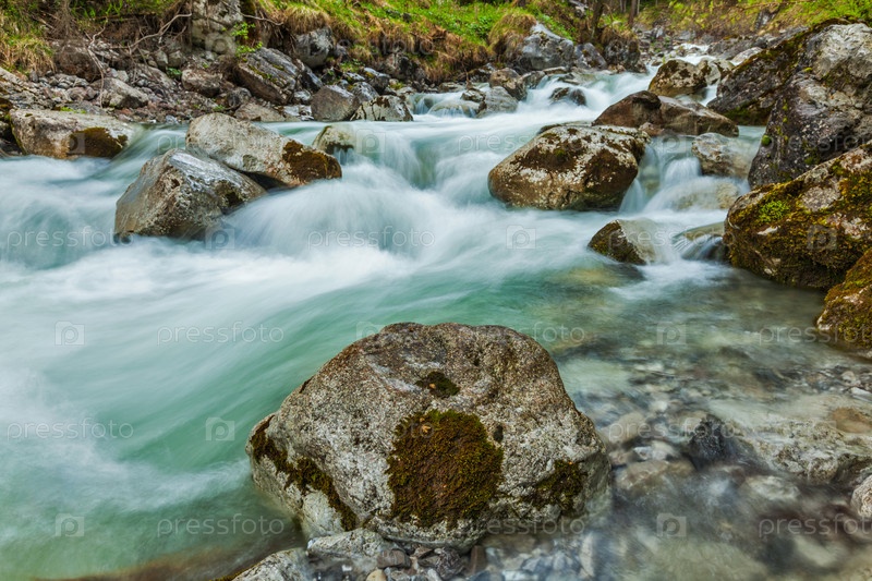 Каскад Куфлухтвассерфаль. Длинная выдержка для размытия изображения. Фархант, Гармиш-Партенкирхен, Бавария, Германия