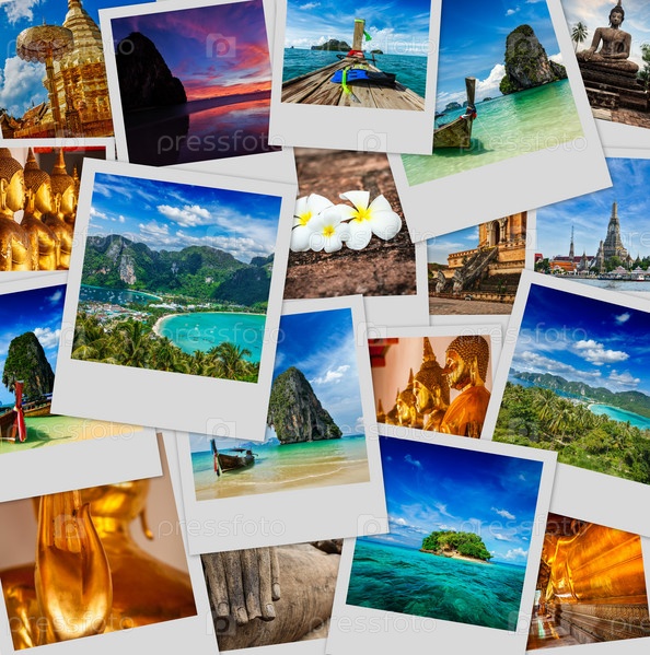 Дизайн концепции тайского туристического туризма - коллаж изображений Таиланда