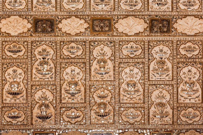 Стена Зеркального зала дворца-форта Янтарь. Раджастан, Индия