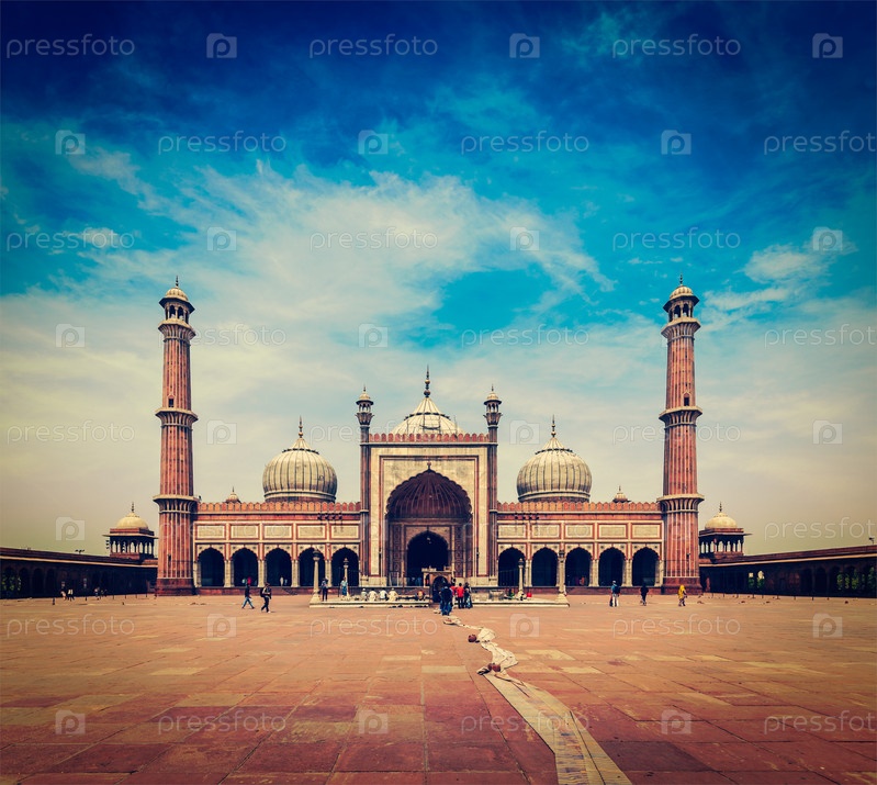 Винтажное ретро-хипстерское туристическое изображение Джама Масджид - крупнейшей мусульманской мечети в Индии. Дели, Индия