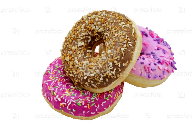 Розовые пончики. Белые пончики. Розовые и белые конфеты. Пончики с ванилью и ягодами