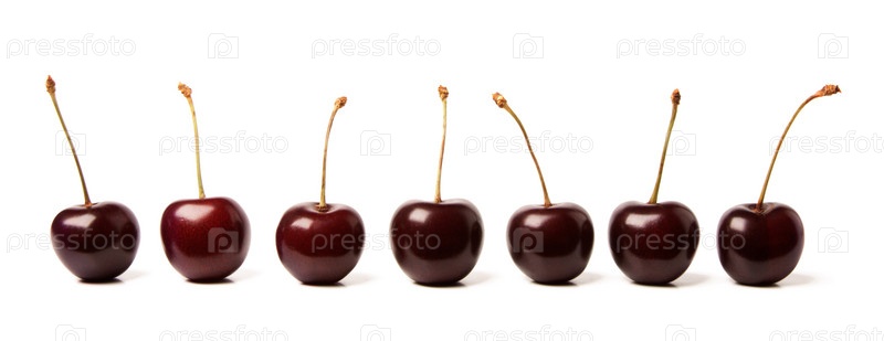 Семь вишенок на белом фоне