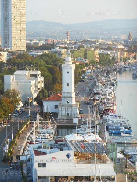 Римини, Италия - 08.01.2014 - Вид на гавань. Открытый