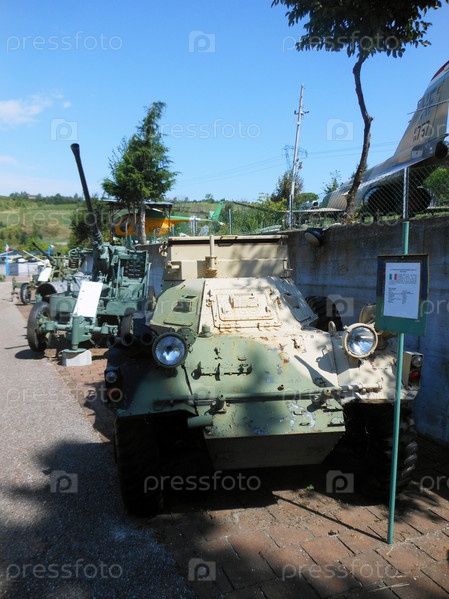 Римини, Италия - 08.01.2014 - Различная старая и устаревшая военная техника на выставке музея под открытым небом. Ориентир
