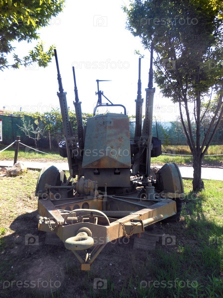 Римини, Италия - 08.01.2014 - Различная старая и устаревшая военная техника на выставке музея под открытым небом. Ориентир