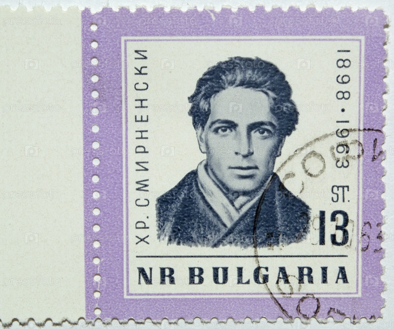 Почтовая марка Болгании 1963 года. Христо Димитров Смирненский (1898-1923) 65 лет со дня рождения. Болгарский поэт, писатель и сатирик