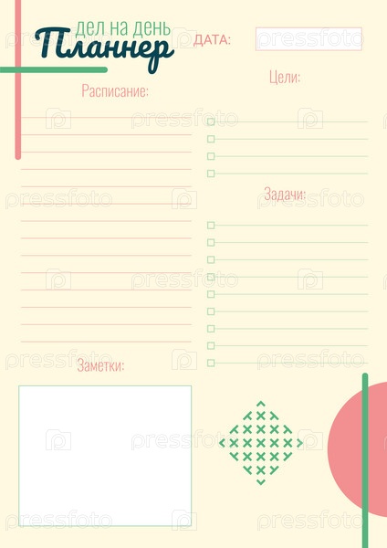 Шаблон персонального планировщика с местом для текста и элементами стиля мемфис