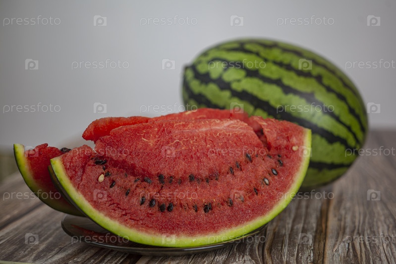 Натюрморт со спелым арбузом на светлом фоне