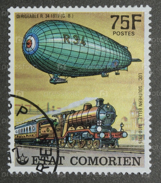 Коморские острова 1977 год Дирижабль и локомотив R.34 Южная красавица
