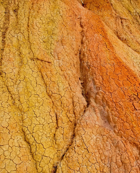 Северный Кыргызстан. Необычная текстура красно-желтых глинистых скал в знаменитом каньоне Сказка, у побережья озера Иссык-Куль