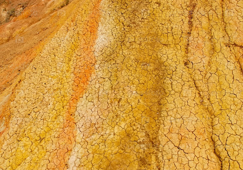 Северный Кыргызстан. Необычная текстура красно-желтых глинистых скал в знаменитом каньоне Сказка, у побережья озера Иссык-Куль