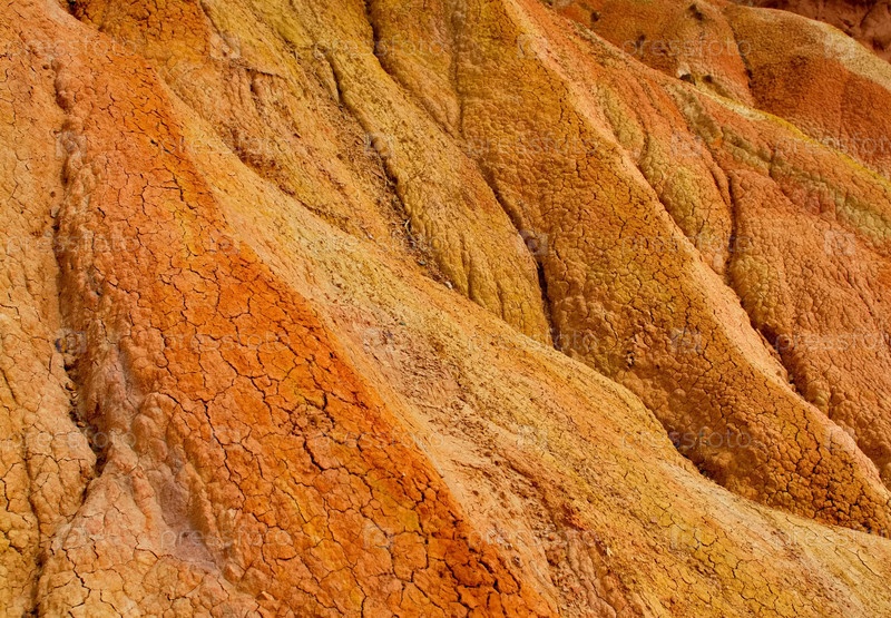 Северный Кыргызстан. Необычная текстура красно-желтых глинистых скал в знаменитом каньоне Сказка, у побережья озера Иссык-Куль
