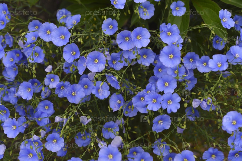 Цветки синего льна в саду. Linum usitatissimum