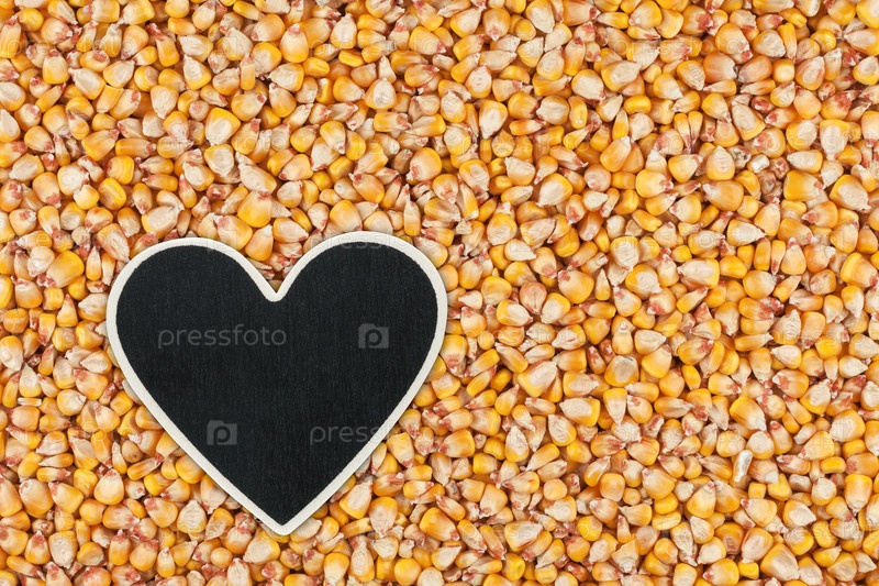 Указатель сердца, ценник лежит на зерне кукурузы