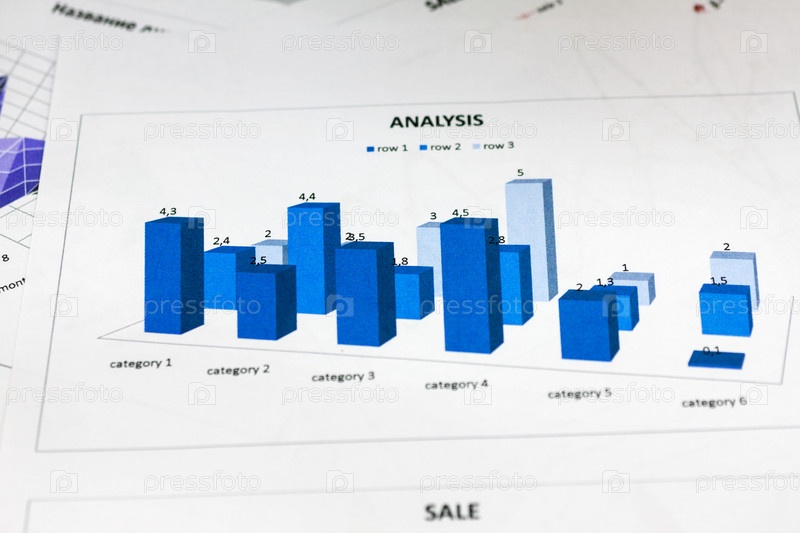 Крупный план, анализ годового отчета, синяя диаграмма