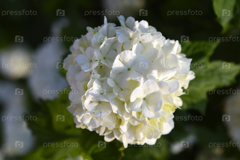 Калина бульденеж. Белые цветы на зеленом кусте